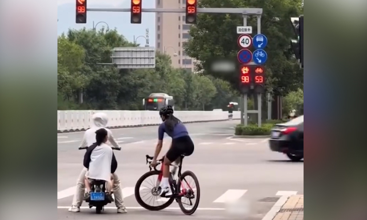 Khi dừng lại chờ đèn đỏ, thay vì chống chân xuống đất, cô gái và sau đó là chàng trai đã giữ thăng bằng một cách hoàn hảo trên chiếc xe. Cô gái đứng yên tại chỗ, không hề nhúc nhích trong suốt gần một phút. Mặc dù xung quanh có nhiều phương tiện khác, cô vẫn cực kỳ tự tin và giữ thăng bằng một cách điêu luyện. Sau đó, một chàng trai đạp xe đến và cũng cho thấy khả năng giữ thăng bằng điêu luyện của mình.